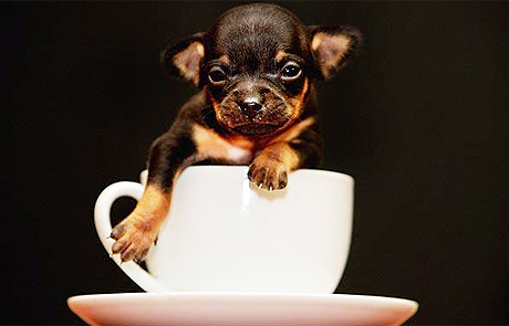 Cún con ba tuần tuổi dòng chihuahua tên là Tom Thumb tạo dáng trong chiếc cốc uống trà ở Renton, Scotland. Ảnh: Getty.