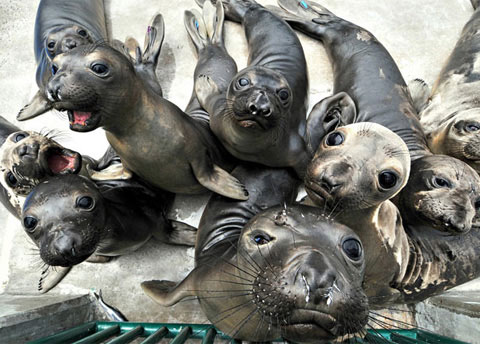 Những con hải cẩu vừa được giải cứu khám phá ngôi nhà mới của chúng tại công viên nước SeaWorld San Diego. Ảnh: AP.
