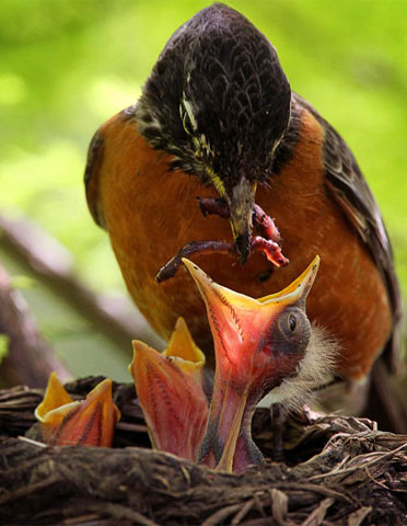 Chim cổ đỏ cho đàn con mới sinh ăn tại St Louis, Missouri, Mỹ. Ảnh: AP. |
