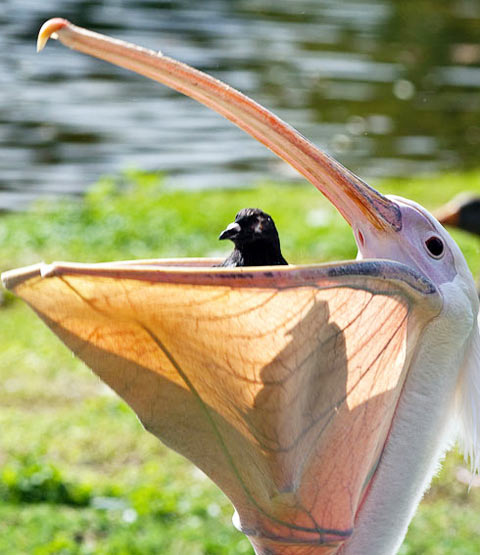 Bồ câu nằm gọn trong chiếc mỏ khổng lồ của bồ nông. Sếu lửa con soi mình trên mặt ao khi tìm nước. Dưới đây là ảnh đẹp thế giới động vật tuần qua.