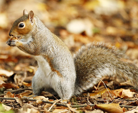 Sóc gặm quả rơi ở Liverpool, Anh. (Ảnh: PA).