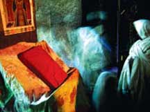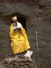 Độc đáo và thánh thiện - những lời mà du khách thường để lại sau khi viếng thăm cây thập tự giá cổ xưa này. Với lối kiến trúc hoàn toàn bằng đá, xây dựng sâu đến gần 5m dưới mặt đất, đây hiện nay là vùng đất thánh của người dân Lalibela. | Giáo dân Lalibela đi lễ trong một nhà thờ đá |