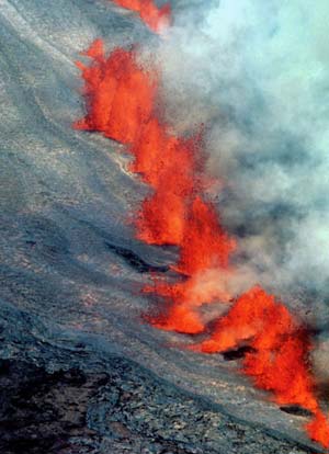 Do nhiệt bên trong, nên ở một số nơi, nhiệt làm chảy đá thành dung dịch (magma). Núi lửa phun vì áp suất. Magma càng lỏng càng dễ sôi và trào lên bề mặt, các bong bóng do magma tạo nên hình thành khí. Áp suất của khí càng lớn khiến cho magma phun càng cao trong không gian.