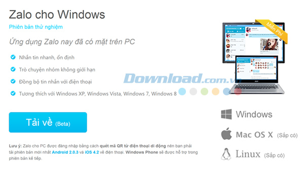 - Ngoài ra, với việc có thể sử dụng được trên hầu hết các nền tảng smartphone (iOS, Android, Windows phone) hay hệ điều hành của máy tính (Windows, Mac OS X, Linus) cũng góp phần không nhỏ biến Zalo thành lựa chọn số một trong số những OTT cùng loại.