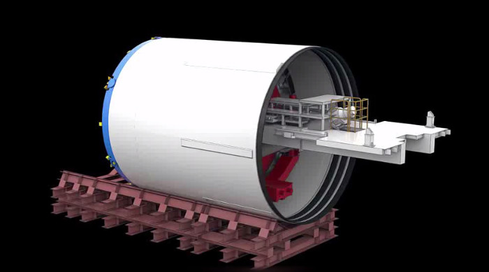 Mất hơn hai tháng dùng cẩu khổng lồ, các kỹ sư mới đưa được robot TBM với chiều dài 70 mét, nặng 300 tấn xuống hầm ga Ba Son. Ngày 26/5, robot này sẽ khoan mũi đầu tiên.